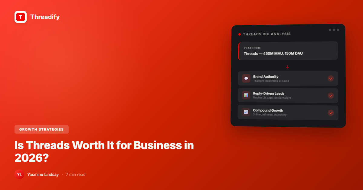 Is Threads worth it for business in 2026? Yes, for most businesses that rely on thought leadership, community, or content marketing. Threads has 450M MAU, surpassed X in daily mobile traffic, and its algorithm heavily rewards reply-driven engagement. It's not worth it for businesses that can't commit to consistent text-based content.