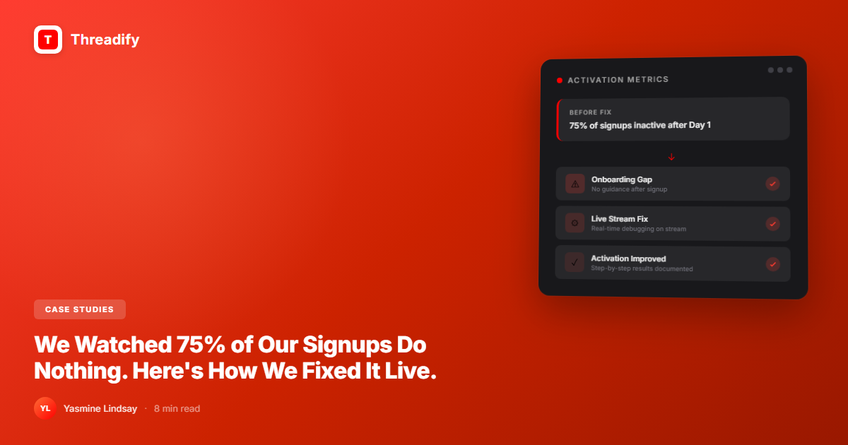The SaaS activation problem happens when users sign up but never reach a product's core value β its "aha moment." They create an account, look around, and leave before the product proves itself. For Threadify, this meant 75% of signups never generated their first thread.
